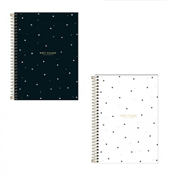 A Caderneta Espiral Capa Dura 1/8 West Village 80 Folhas possui capa dura com detalhe metalizado, parte interna decorada, folhas pautadas decoradas e espiral colorido. Ideal para o dia a dia.
