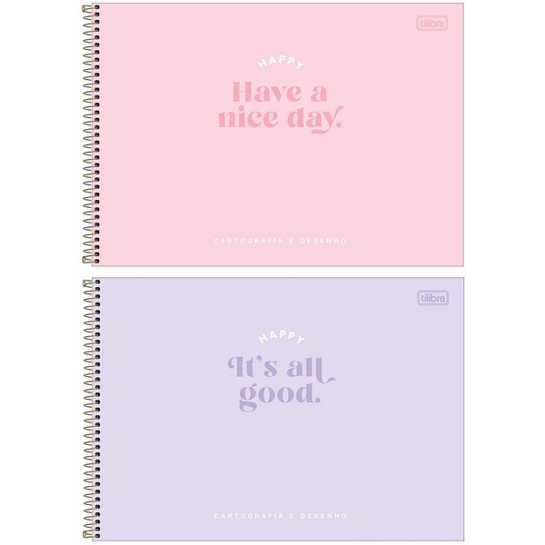 O Caderno Cartografia e Desenho Happy 80 folhas possui capa dura e folhas sem pautas. Possui folhas com uma gramatura levemente maior que o tradicional.