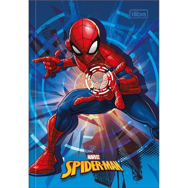 Caderno Brochura Capa Dura 1/4 Spider-Man, 48 folhas. Possui a parte interna decorada, folha dupla de adesivos e folhas pautadas (adesivos podem variar).