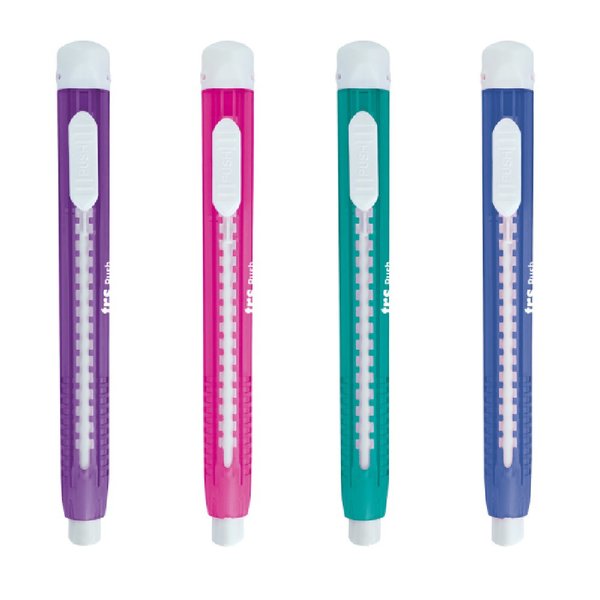 A caneta Borracha Push possui mecanismo retrátil e corpo triangular antideslizante! Com trava para a borracha e excelente desempenho ao apagar. A borracha é livre de PVC e de textura macia.