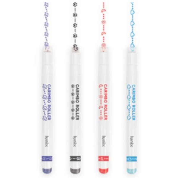 O Carimbo Roller Lunix tem formato de caneta, com tinta à base de água, nas opções de estampas de planeta, patinhas, sol e lua e nuvens.
