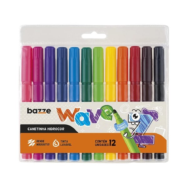 Canetinhas hidrocores de corpo robusto e ponta grossa com tinta à base de água e grande reservatório, garantindo traço de qualidade por mais tempo.