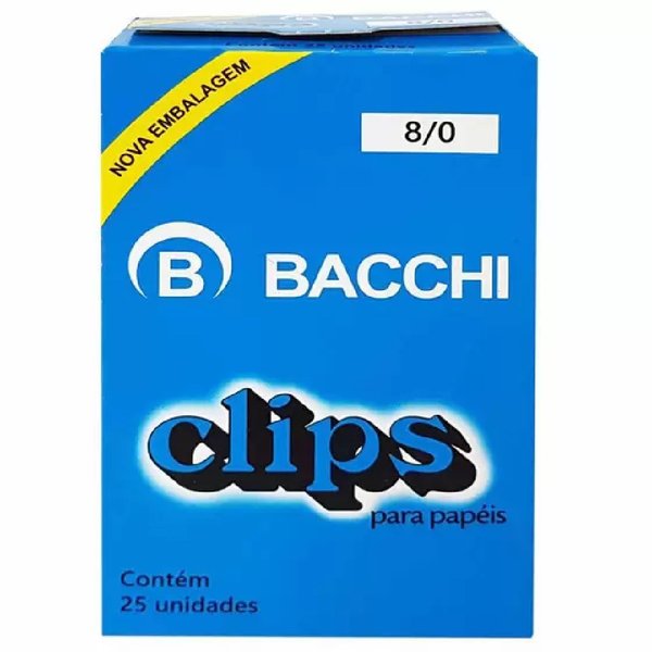 O Clips galvanizado 8/0 Bacchi produzido em arame de aço, tem maior resistência e maciez em todo o processo., auxiliando na organização dos papéis. Ideal para a utilização em escritórios, trabalhos escolares, entre outros.
