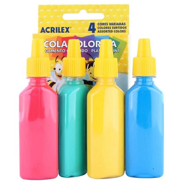 Cola colorida foi desenvolvida para trabalhos escolares e artesanais, embalagem com 4 cores variadas de 23 g cada.