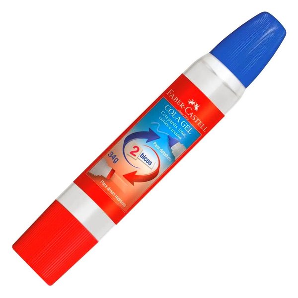 A Cola Gel da Faber-Castell tem 2 bicos: um bico menor para uso em áreas pequenas e trabalhos detalhados que exigem maior precisão e outro bico com sistema de espalhamento, para uso em áreas maiores.