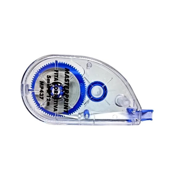 A Fita Corretiva 5mm x 12m MP437 MASTERPRINT é uma solução prática e eficiente para corrigir erros de escrita de forma rápida e limpa. Com largura de 5mm e comprimento de 12 metros, essa fita corretiva é ideal para ser usada em trabalhos escolares, anotações e documentos importantes, proporcionando uma cobertura uniforme e sem manchas. O design ergonômico facilita o uso, permitindo uma aplicação precisa e sem esforço. Seu formato compacto é perfeito para ser levado na bolsa ou estojo, garantindo que você tenha sempre uma forma prática de corrigir seus escritos. Com a Fita Corretiva MASTERPRINT, você nunca mais precisará se preocupar com erros de caneta em seus trabalhos e documentos.