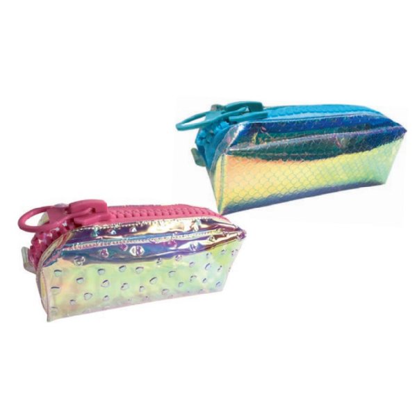 Estojo holográfico com zíper tratorado gigante, super divertido e funcional para o seu dia a dia.