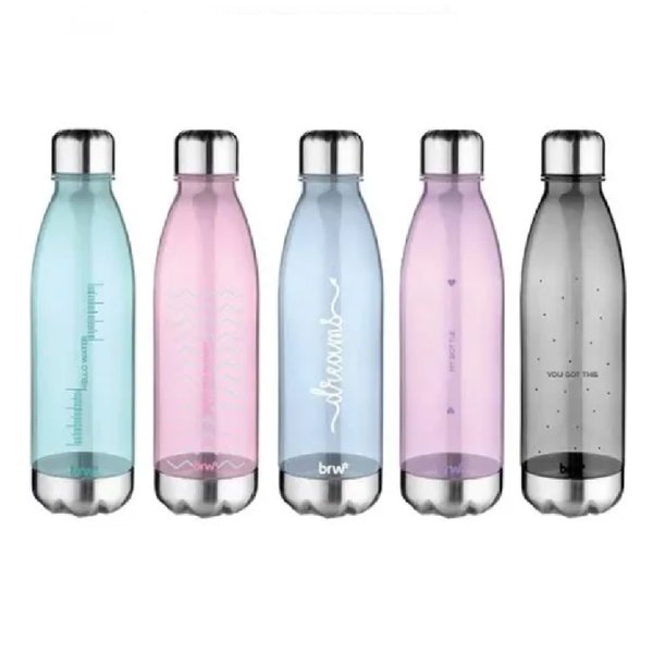 Garrafa Plástica Estampada Com Tampa Alúminio, capacidade de 700 ml.