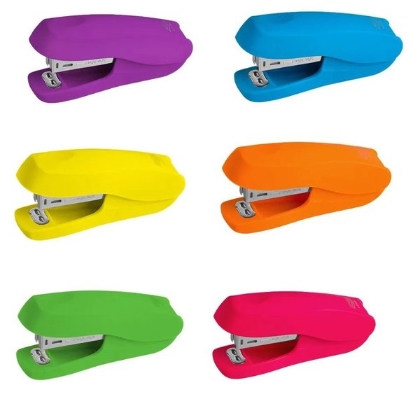 Grampeador Neon de 10,7cm BRW possui design moderno e leve, o que proporciona conforto ao grampear. É compatível com os tamanhos 24/6 e 26/6 e conta com base de fechamento do grampo na posição fechada.