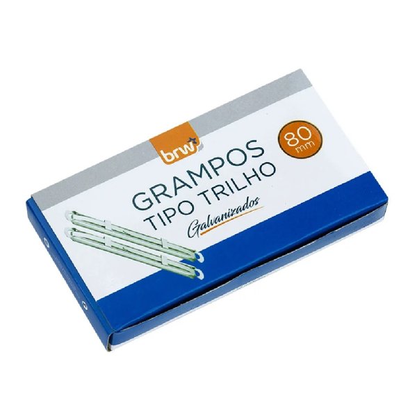Grampo trilho de metal na cor prata para arquivar documentos.