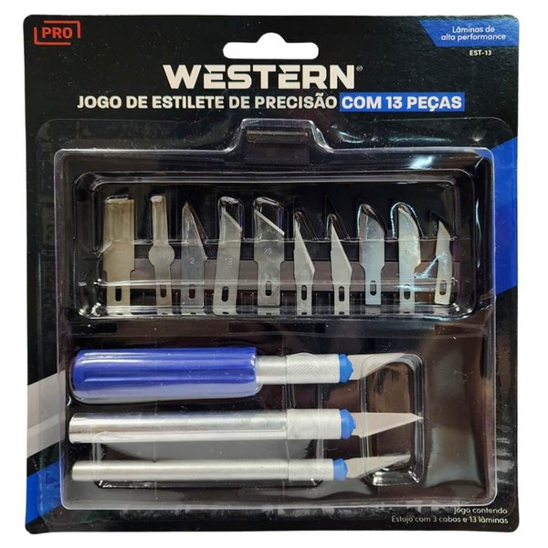 Prepare-se para aprimorar suas habilidades de corte com o Jogo de Estiletes Western de 3 Cabos e 13 Lâminas! Ideal para artesãos, artistas, entusiastas de DIY e profissionais que valorizam precisão e versatilidade. Composto por 3 estiletes de alta qualidade, ergonomicamente projetados para conforto durante o uso prolongado, este conjunto oferece uma solução completa para qualquer projeto. Cada cabo acompanha uma seleção cuidadosa de lâminas, proporcionando uma variedade de estilos de corte para suas necessidades específicas.