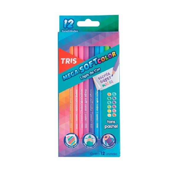 Lápis de Cor TRIS Tons Pastel é fabricado em madeira, 100% seguro e atóxico, escrita super macia, possui formato triangular para fácil manuseio.