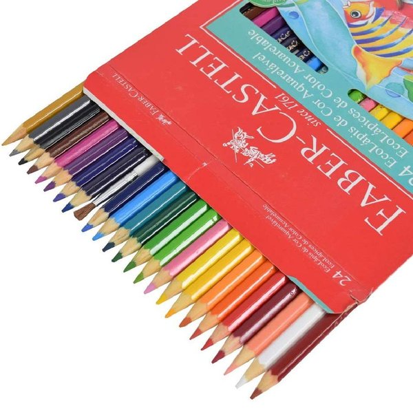 Lápis de Cor Aquarelável Ecolápis, o desenho vira aquarela com uso do pincel molhado. Fórmula exclusiva e processo especial de fabricação que proporciona maior resistência à ponta.
