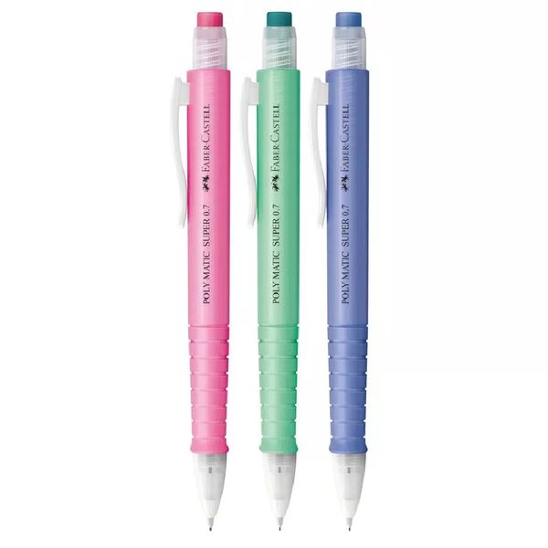 A Lapiseira Poly Matic Super da Faber-Castell possui a tecnologia Matic, que possibilita o avanço automático da mina para uma escrita contínua.