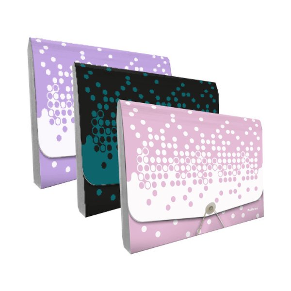 Pasta sanfonada DOTS tamanho A4 com 12 divisórias. Possui 12 divisões para organizar em ordem alfabética, mensal, numérica por assunto ou qualquer ordem lógica, facilita a consulta e organiza as tarefas pois unifica tudo em um único local.