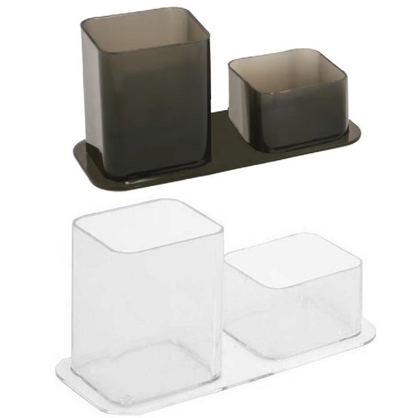 Porta objetos, canetas e clips Dello em poliestireno, possui 2 divisões. Acomoda diversos tipos de materiais pequenos.