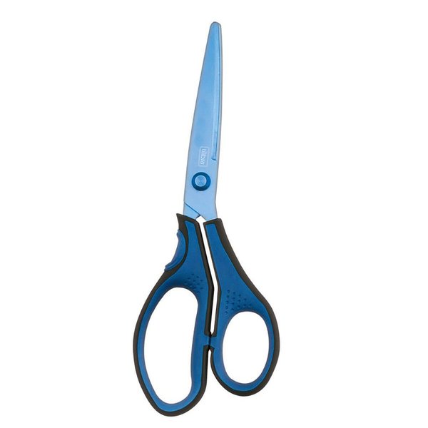 Tesoura Profissional 210mm Titanium T500 Azul possui cabo ergonômico emborrachado e lâminas azuis revestidas em titânio, permanecendo afiadas por muito mais tempo garantindo sua durabilidade. Ideal para uso diário em casa ou no escritório.