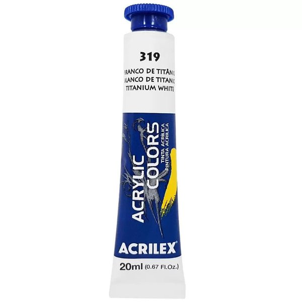 Tinta acrílica para telas e trabalhos artísticos em cartão, papelão ou outras superfícies preparadas com Base Acrílica para artesanato, Gesso Acrílico ou Pasta para modelagem Acrilex.