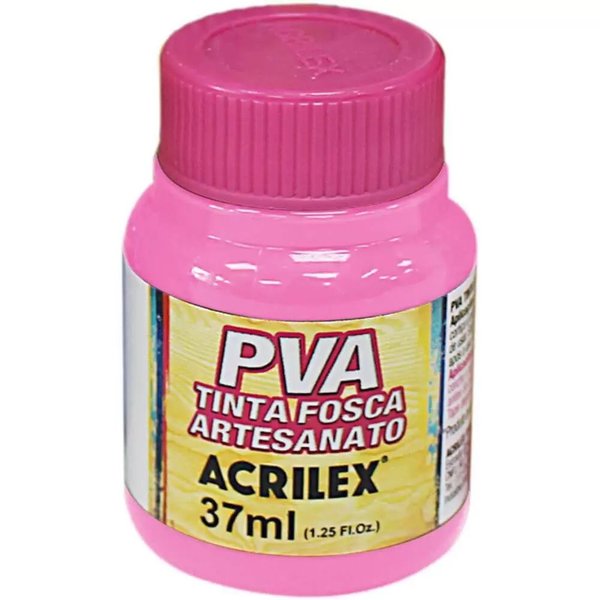 A tinta PVA fosca é ideal para uso artesanal, se caracterizando por sua rápida secagem, acabamento fosco, e por ser a base de Látex P.V.A. Pode ser usada sobre madeira, MDF, cortiça, palha, isopor, gesso, cerâmica, papel e PET (anteriormente preparado com o Primer Acrilex).
