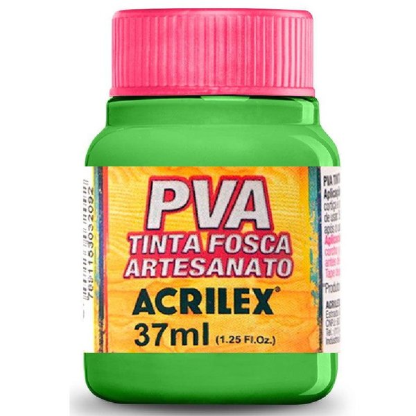 A tinta PVA fosca é ideal para uso artesanal, se caracterizando por sua rápida secagem, acabamento fosco, e por ser a base de Látex P.V.A. Pode ser usada sobre madeira, MDF, cortiça, palha, isopor, gesso, cerâmica, papel e PET (anteriormente preparado com o Primer Acrilex).
