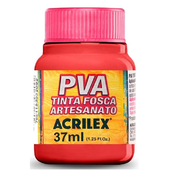 A tinta PVA fosca é ideal para uso artesanal, se caracterizando por sua rápida secagem, acabamento fosco, e por ser a base de Látex P.V.A. Pode ser usada sobre madeira, MDF, cortiça, palha, isopor, gesso, cerâmica, papel e PET (anteriormente preparado com o Primer Acrilex).