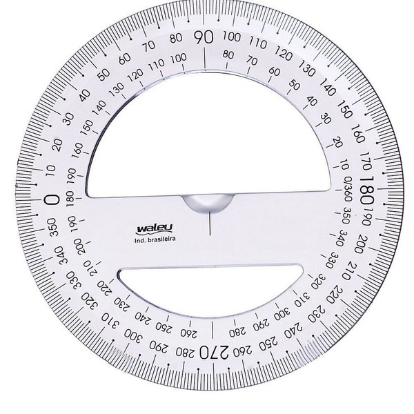 A Transferidor Escolar Waleu é uma régua especial que serve para medir os ângulos ao longo de uma circunferência. Com o seu transferidor pode agora traçar uma meia circunferência e medir os ângulos quando percorre a circunferência a partir do lado direito.
